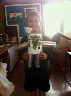 Wow Nicolas what a wonderful robot you have created. Nicolas used spray paint to create a silver effect. You'd never know it was made from box construction!